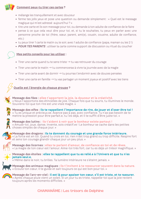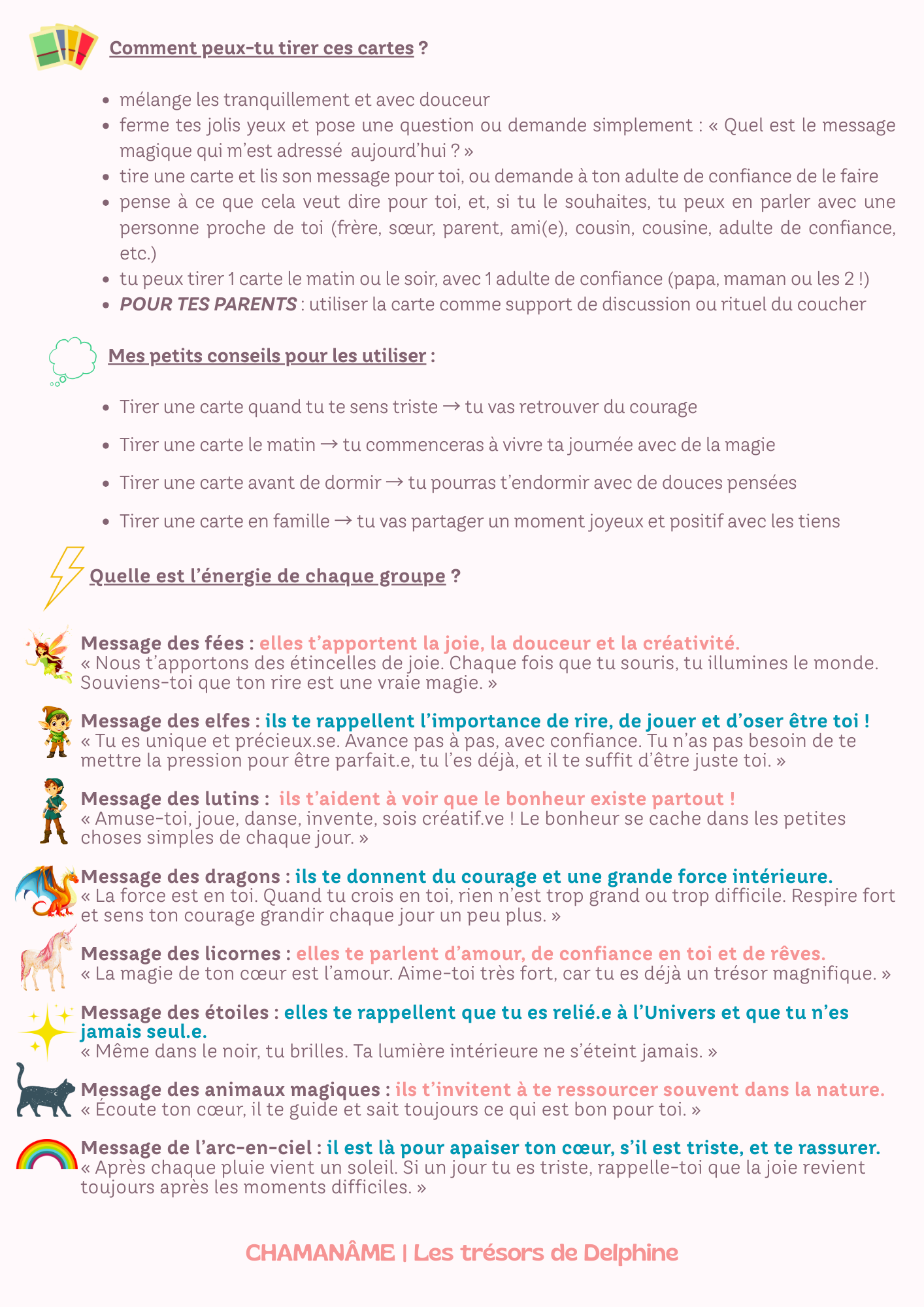 L'Oracle des Murmures Magiques invite les enfants (ou ton enfant intérieur, car nous sommes tous.tes des enfants qui avons grandi !) à écouter leur cœur, à croire en eux et à cultiver la joie au quotidien.